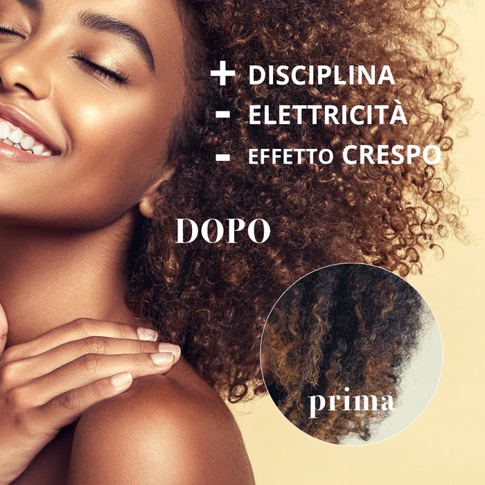 Trattamento pre-shampoo anticrespo ideale per i capelli sottoposti continuamente a stress,come calore (phon e piastra) e prodotti di styling.