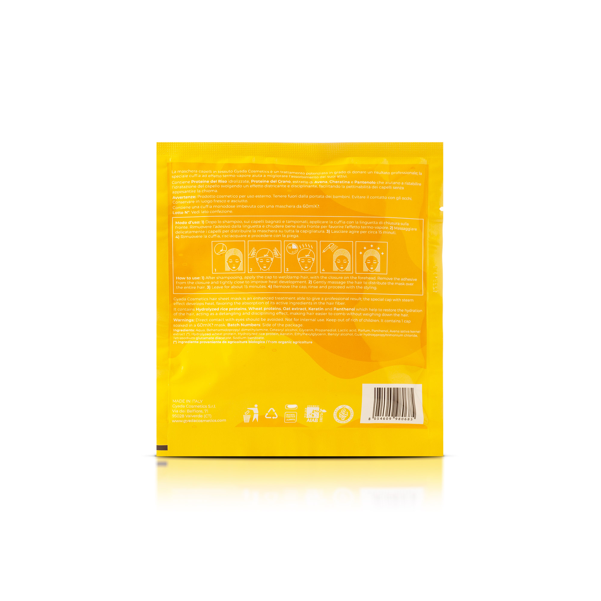 La maschera capelli in tessuto Gyada Cosmetics è un trattamento potenziato in grado di donare un risultato professionale; la speciale cuffia ad effetto termico sviluppa calore durante l’applicazione della maschera, favorendo l’assorbimento dei suoi attivi nella fibra capillare.